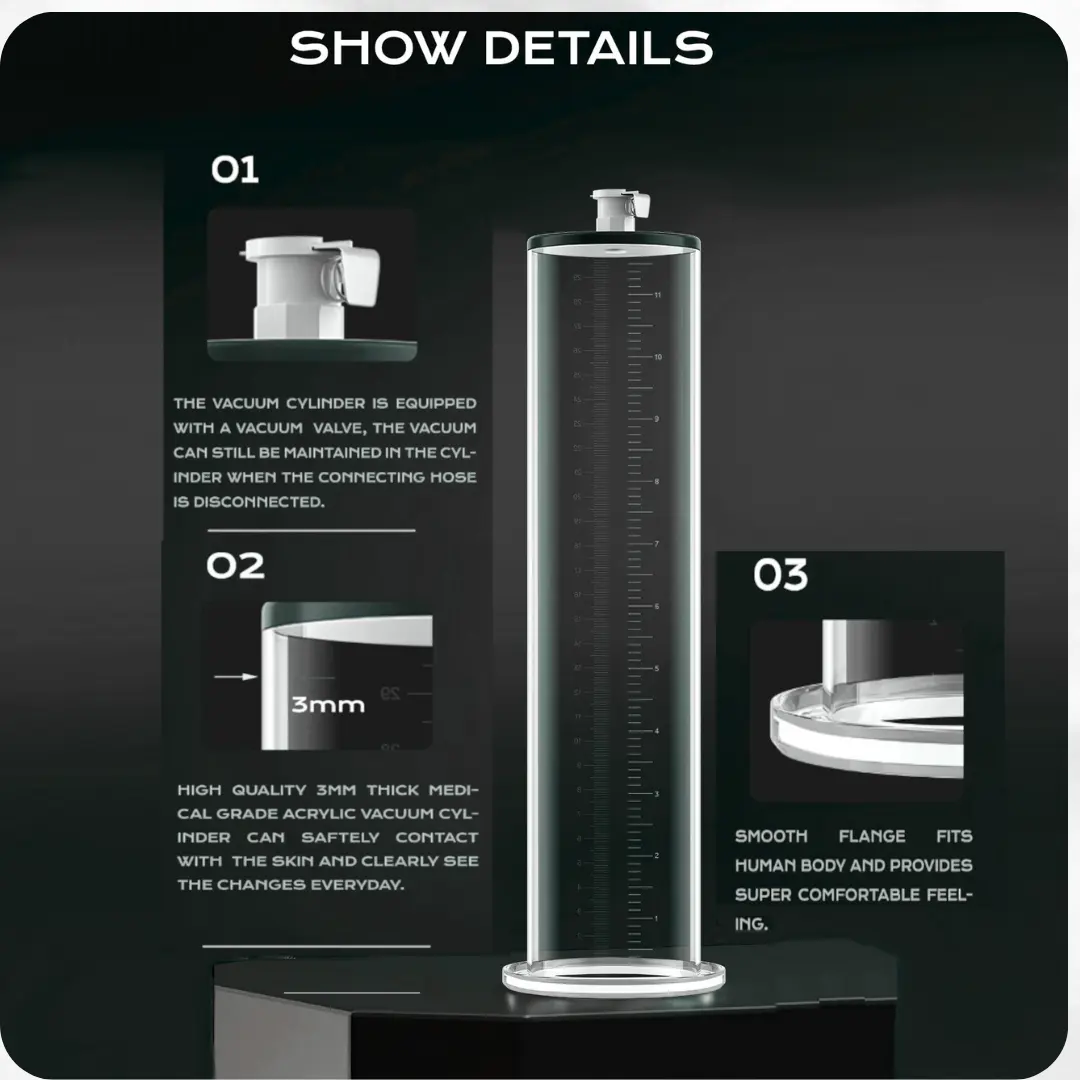 Choosing the right size is key to achieving comfortable and effective results. We recommend using our detailed Size Guide to find your ideal cylinder fit based on your current measurements. The SmartTract Size Guide ensures a secure seal, proper vacuum consistency, and maximum comfort during sessions.